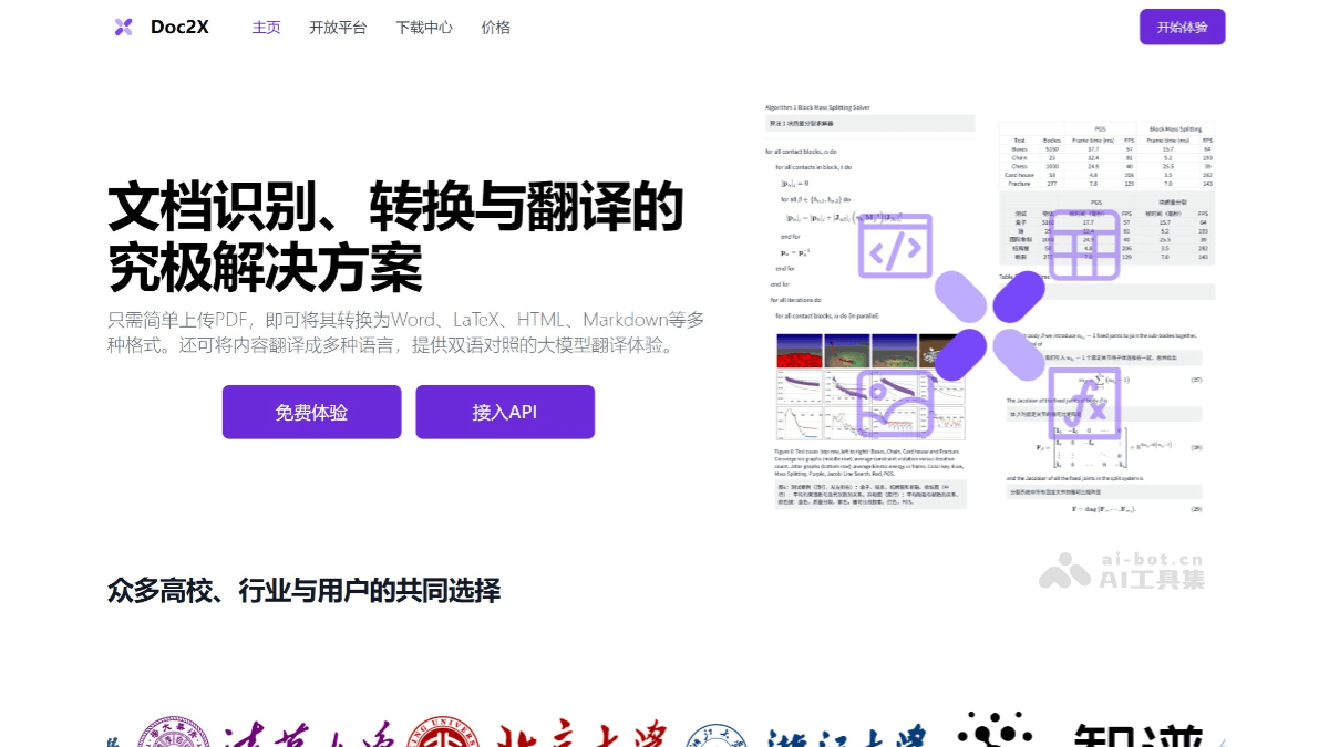 - 开发者可以通过访问官方网站使用API服务,集成Doc2X的功能到自己的应用中。